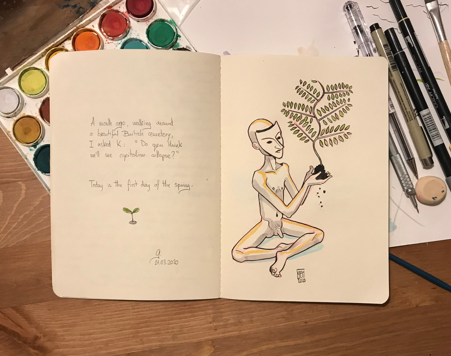 Descubro, de repente, un nuevo sentido de comunidad, y me pregunto de qué nos podría servir cuando todo esto se pase. Mi imaginación es salvaje y ahora, entre cuatro paredes, rebota y se magnifca, vibra, viaja, crea. Aprovecha una crisis desalmada para encontrar espacios de crecimiento. Aprovecha las cenizas, los huesos, la materia en descomposición de una sociedad avocada la sufrimiento para construir otra que se ama y se cuida.
