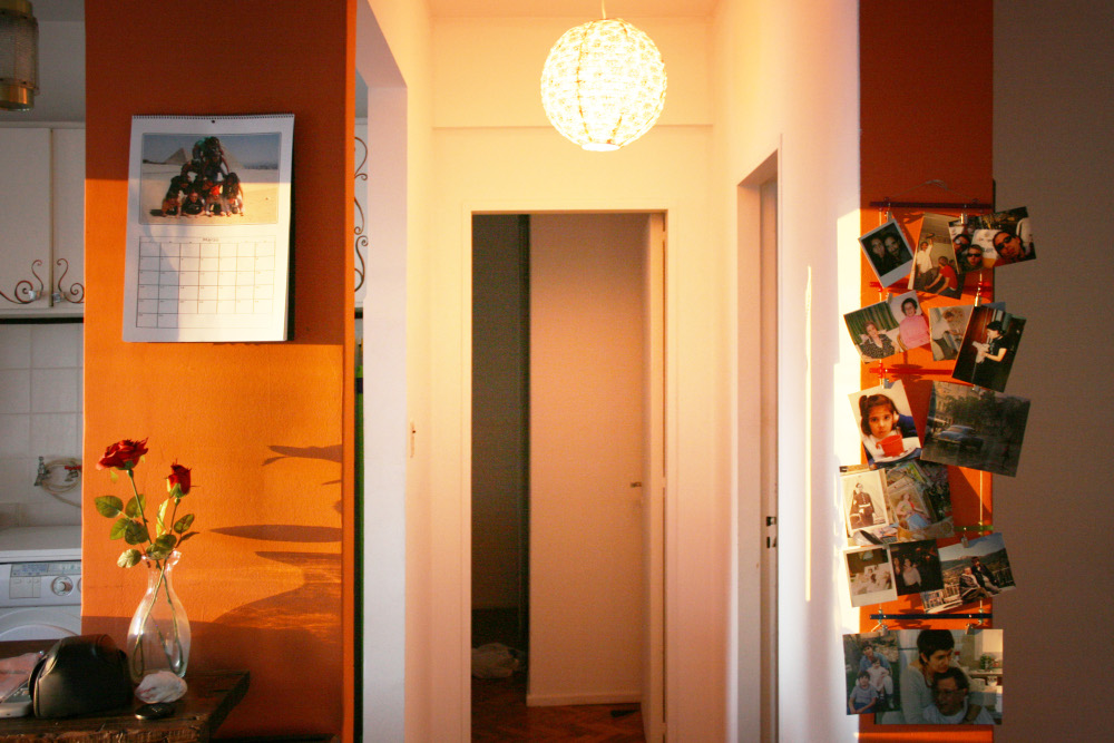 Ahora tirada en el sofá, con la cocina repleta de las pruebas de una cena típica argentina, pienso. Estoy bien, contenta de haber venido. Vivo en una casa que dificilmente hubiera podido imaginar, un séptimo, naranja, que mira hacia el Oeste para no perderse ningún día los mejores atardeceres sobre el suelo más heterogéneo. Una casa preciosa donde sus paredes, naranjas, ya tienen las fotos de todos aquellos que nos faltan por aquí.
