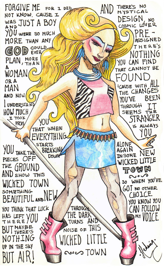 Ahora la pongo y soy yo la que no puede apartar la vista, la que canta en voz alta, una tras otra, todas las canciones de Hedwig. Parece difícil identificarse con una transexual de Berlín del Este cuya operación de cambio de sexo no salió del todo bien y que recorre los Estados Unidos contando su historia mientras respira Rock'n Roll. Y sin embargo, el viaje de Hedwig es el de todos nosotros, el de la búsqueda, el del amor, el de la aceptación de uno mismo. Hedwig y su pulgada enfada, su banda de inmigrantes, siempre - ¡Siempre! - me hablan desde dentro.